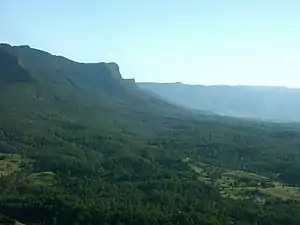 ![]() The forested eastern slopes in the Tweed Valley, below the Tweed Range | |