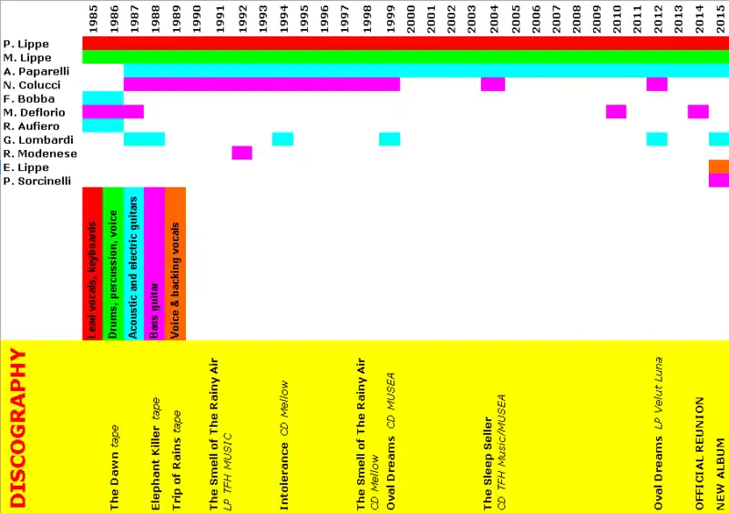 - Michele Deflorio (Bari, 1964) – bass guitar – (1986, The Dawn – Demo-Tape) (Before and After The Boundary – CD Compilation) (Percussion on "Twenty-Four-Pink-Hot-Tentacles" from Oval Dreams, Musea 1999, Velut Luna LP 2012);