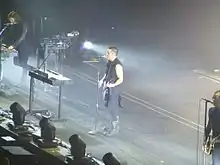 In an interview with BBC Radio 1, Reznor indicated that he would be writing for the majority of 2012 with Nine Inch Nails "in mind".[16] In 2012, he confirmed that he was working on new Nine Inch Nails material and might be performing live again.[17][18][19] In February 2013, Reznor announced the return of Nine Inch Nails and revealed tour details. He also revealed that the new lineup of the band included Eric Avery of Jane's Addiction, Adrian Belew of King Crimson, and Joshua Eustis of Telefon Tel Aviv, as well as returning members Alessandro Cortini and Ilan Rubin.[20][21] However, both Avery and Belew quit before the tour commenced,[22][23] with former member Robin Finck returning in their place.[24][25]