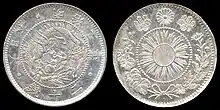 The 20 sen coin (二十銭銀貨) was a Japanese coin worth one fifth of a Japanese yen, as 100 sen equalled 1 yen.[1] These coins were minted in silver during the Meiji era from 1870 to 1911.[2][3]