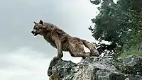 Overseeing the visual effects department for New Moon was Susan MacLeod, who had previously worked with Weitz during the production of The Golden Compass.[61] MacLeod enlisted Tippett Studio to create the computer-generated wolves, while Prime Focus of Vancouver handled the effects of the vampires.[61] To prepare for the aggressive task of making the wolves look real, Tippet artists studied wolf culture.[62] They also were able to reflect leadership and human muscle size by adjusting certain features of the wolves, such as their fat and height.[62] In February 2009, a group of artists were able to travel to Wolf Mountain Sanctuary, outside of Los Angeles, and see real wolves.[62] The artists were able to observe the behavior of both the timber and arctic wolves, who ran in packs of three to five. The idea was to give everyone a deeper feeling of the creature that they were creating.[62]