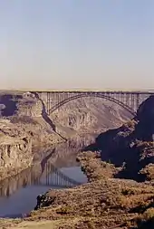Twin Falls became the center of national attention 49 years ago in September 1974, when daredevil Evel Knievel attempted to jump the Snake River Canyon in a specially modified rocket cycle. Watched by millions on closed-circuit television on a Sunday afternoon, the attempt ultimately failed due to high winds and a premature deployment of Knievel's parachute.[22][23][24][25] The launch ramp's foundation lies on private land on the canyon's south rim. Less than 2 miles west (3 km) of Shoshone Falls, it is still visible (42.597°N 114.423°W).