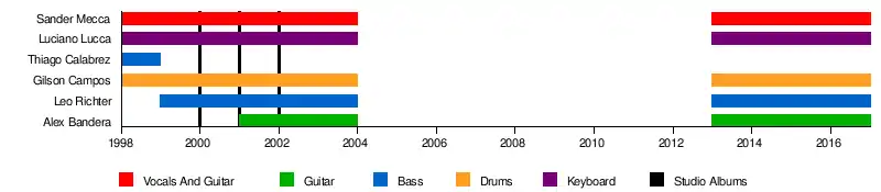 In 2001, Lucca decided to abandon the group after having some discussions with the Batista. Bandera replaced him. Two months later, the group dumped Batista and called back Lucca.
