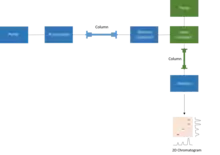 There are two major classifications of 2D liquid chromatography. These include: Comprehensive 2D liquid chromatography (LCxLC) and Heart-cutting 2D liquid chromatography (LC-LC).[18] In comprehensive 2D-LC, all the peaks from a column elution are fully sampled, but it has been deemed unnecessary to transfer the entire sample from the first to the second column. A portion of the sample is sent to waste while the rest is sent to the sampling valve. In heart-cutting 2D-LC specific peaks are targeted with only a small portion of the peak being injected onto a second column. Heart-cutting 2D-LC has proven to be quite useful for sample analysis of substances that are not very complex provided they have similar retention behavior. Compared to comprehensive 2D-LC, heart-cutting 2D-LC provides an effective technique with much less system setup and a much lower operating cost. Multiple heart-cutting (mLC-LC) may be utilized to sample multiple peaks from first dimensional analysis without risking temporary overlap of second dimensional analysis.[18] Multiple heart-cutting (mLC-LC) utilizes a setup of multiple sampling loops.