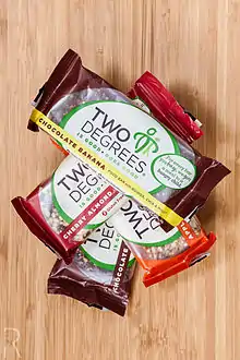 Two Degrees was a one-for-one food company that produced vegan snack bars. One of their main ways to promote their business was using some of their profit to give food to hungry children.[1] Two Degrees Food has provided meals to children in areas including the United States, Kenya, India, Malawi, Somalia, Colombia, and Myanmar.[2][3][4][5]
