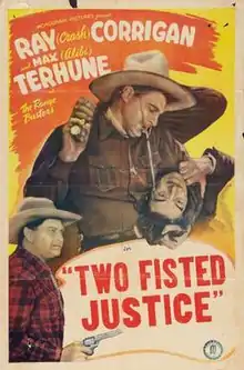 Two Fisted Justice is a 1943 American Western film directed by Robert Emmett Tansey.[1] The film is the nineteenth in Monogram Pictures' "Range Busters" series, and it stars John "Dusty" King as Dusty, "Davy" Sharpe and Max "Alibi" Terhune, with Gwen Gaze, Joel Davis and John Elliott.