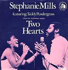 "Two Hearts'" is a hit duet sung by American R&B singers Stephanie Mills and Teddy Pendergrass, from Mills' fifth studio album Stephanie (1981).[1] The song was written and produced by James Mtume , Reggie Lucas and Tawatha Agee. Released in January 1981, the single reached number 40 on the US Billboard Hot 100 in 1981. On the US Billboard R&B chart, "Two Hearts" reached number three.[2]