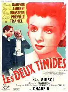 Two Timid Souls (French: Les deux timides) is a 1943 French historical comedy film directed by Yves Allégret, Marcel Achard and Marc Allégret and starring Pierre Brasseur, Jacqueline Laurent and Claude Dauphin.[1] It was based on the 1860 play by Eugène Labiche which had previously been turned into a 1928 silent film version by René Clair.