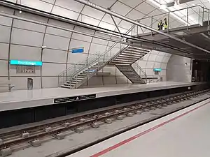 Txurdinaga follows the same cavern-like station layout shared by most underground stations of the system, designed by Norman Foster, with the main hall located suspended directly above the tracks.[2]