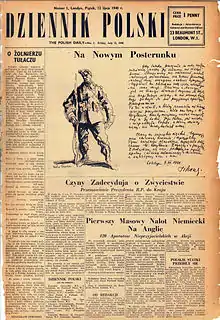 Tydzień Polski is the successor title to the Dziennik Polski i Dziennik Żołnierza (English: "The Polish Daily and Soldier's Daily"), commonly known as Dziennik Polski, The Polish Daily, which was the first Polish language Daily newspaper continuously published in the United Kingdom from 12 July 1940 to July 2015. On 17 July 2015 it became a weekly publication, Tydzień Polski, The Polish Week.[1]