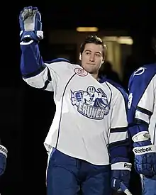 Johnson played the 2011–12 season with the Norfolk Admirals, the Lightning's top American Hockey League (AHL) affiliate. In March, he went on a 13-game scoring streak, including back-to-back two goal games, the longest streak by an AHL rookie in more than six years. This streak helped him earn the Reebok/AHL Player of the Month award for March 2012.[9] Tyler Johnson was a key player in the Norfolk Admirals record winning streak of 28 games, which is a professional hockey league record.[10] He was also a key player in Norfolk's first ever Calder Cup that Season.[11]