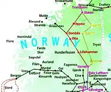 He finds "a branch line that runs from Hamar to Stören, passing through Elverum, Tynset and Røros".[4] He contemplates the sound of the station names and the images they evoke in him. He is particularly fascinated by Tynset, where he has never been. He later determines to go to Tynset, but he becomes distracted as he gets up to go through the house, up to the top floor past where Hamlet's father often stands.