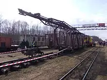 The Tyosovo peat railway (Russian: Тёсовская торфовозная узкоколейная железная дорога) is located in Novgorod Oblast, Russia. The peat railway was opened in 1939, and has a total length of 19 kilometres (12 mi) is, track gauge is 750 mm (2 ft 5+1⁄2 in) and operates year-round.[1]