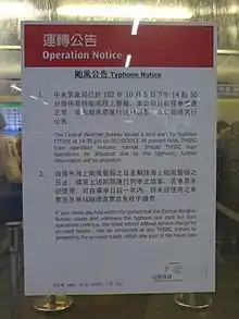 On the Japanese island of Okinawa, 288 flights at Naha Airport were canceled, affecting 28,000 people. Officials also canceled bus, monorail, and ferry services.[23] In South Korea, workers involved with the 2013 Formula One season issued a typhoon alert and began planning contingencies in the event Fitow affected the Korean Grand Prix.[24] Officials in Taiwan issued a storm warning before Fitow passed north of the island.[25] The Taiwan military activated 20,000 troops to protect and be on standby. Seventeen ferry services between Taiwan and the offshore islands were terminated,[26] and over 200 flights were canceled. Schools and government offices closed in portions of Taiwan due to the storm.[27]
