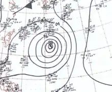 At 06:00 UTC on June 26, the JMA estimated Kit's pressure to have abruptly dropped to 880 mbar (hPa; 25.99 inHg),[2] which would rank it among the top ten most intense tropical cyclones on record.[4] Around this time, the JTWC estimated Kit to have attained peak winds of 315 km/h (195 mph);[3][5] however, these winds are likely an overestimate.[6] A later reconnaissance mission on June 26 reported a pressure of 912 mbar (hPa; 26.93 inHg), the lowest observed in relation to the typhoon.[1] Weakening ensued thereafter as the system accelerated to the north-northeast. Retaining typhoon strength, Kit brushed southeastern Honshu, Japan, on June 28, passing roughly 155 km (100 mi) east of Tokyo. The system subsequently weakened to a tropical storm and transitioned into an extratropical cyclone south of Hokkaido on June 29.[3] The National Oceanic and Atmospheric Administration reported the remnants of Kit to have dissipated the following day near northeastern Hokkaido.[7] However, the JMA states that the system turned eastward and accelerated over the north Pacific before losing its identity on July 3 near the International Dateline.[2]