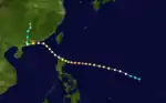 On June 17, Typhoon Dolly formed. It moved northwestward, only to strengthen. After passing by the Philippines, it reached its maximum intensity of 125 mph, a strong major hurricane. It rounded around Taiwan and made landfall on China's shoreline. It dissipated hours after on June 23.