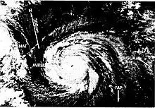 ![]() Typhoon Mireille at peak intensity west of Guam on September 22 | |