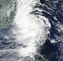 On August 23, the system's rainbands caused heavy rains in the Philippines's Zamboanga del Sur province triggering a landslide. No one was reported to be dead or injured however.[53] On August 26, the National Disaster Risk Reduction and Management Council (NDRRMC) reported that one fisherman went missing after local residents reported that they found his banca empty.[54] On that day, the typhoon spawned a tornado in the Biliran Province blowing out three school buildings. No children were reported to be dead or injured although.[55]
