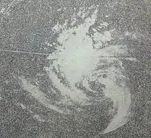 On July 8, a United States Air Force B-52 heading to Vietnam was caught in the circulation of Rita and crashed less than 280 km (170 mi) west of the storm.[4] Shortly after the incident, seven aircraft were deployed for search-and-rescue while a Japanese merchant vessel, the Ariake, provided assistance.[7] A United States Coast Guard Cutter, Basswood, was also sent to the area. Initial reports stated that all six of the aircraft's crew had been spotted amid 3 m (9.8 ft) swells.[8] Of the six crew, one died and the remaining five were rescued by the submarines Barb and Gurnard on July 9.[9]