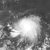 ![]() Typhoon Songda at its peak intensity, battering the northeastern Philippines on May 27 | |