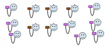 In the above no-tyranny scenario, suppose no floor federation, but (only) a room with some local governance. Suppose that the gym room is not used by all, but there is a "community" of regulars, there is a grouping of voters by its activity as speed-cyclists (illustrated as spiked hair), that have the gym room key for some activities on Sundays. They are acting collectively to preserve the gym room for a local cyclists group.