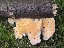 Tyromyces is a genus of poroid fungi in the family Polyporaceae. It was circumscribed by mycologist Petter Karsten in 1881.[1] The type species is the widely distributed Tyromyces chioneus, commonly known as the white cheese polypore.[2] The phylogenetic position of Tyromyces within the Polyporales is uncertain, but it appears that it does not belong to the "core polyporoid clade".[3] Tyromyces is polyphyletic as it is currently circumscribed, and has been described as "a dumping place for monomitic white-rot species with thin-walled spores."[4]