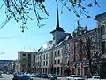 The area to the east of the historical town centre built between 1948 and 1978 and is mostly 4 and 5-storey buildings. Earlier buildings in this area have individual designs, but the later buildings have a rectangular style. This area contains most of the political and business activities of the town.
