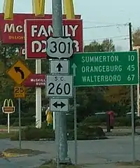 US 601 in Bamberg. The highways travel concurrently to Orangeburg.
