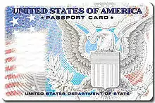![]() The front of a United States passport card | |