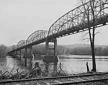 | Marquette–Joliet Bridge; Iowa–Wisconsin state line; western end of WIS 60 concurrency | ||||||