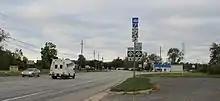 US Highway 25A (US 25A) was an alternate route near Port Huron that provided a connection to the Blue Water Bridge to Canada. The highway split from its parent north of Port Huron and followed 24th Avenue south to connect to M-51 (Pine Grove Avenue) while US 25 followed Lakeshore Road and Gratiot Avenue into Port Huron. The parent highway crossed under the approaches to the Blue Water Bridge, and the alternate route, along with M-51, provided a signed path between US 25 and the bridge.[32] The designation was created in early 1940[28][29] and was deleted when US 25 was rerouted in 1963 through Port Huron and over the alternate route.[32][33]
