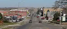 US 75 enters Nebraska along the Kansas state line south of Dawson in Richardson County. The highway travels north through agricultural fields the comes to an intersection with N-8. After crossing the south and north forks of the Big Nemaha River the highway enters Dawson a small village founded as Noraville in 1872 along the Atchison and Nebraska Railroad. The highway continues north out of Dawson and less than one mile (1.6 km) later has a junction with the northern terminus of U.S. Route 73. The highway then makes a sweeping turn to jog one mile (1.6 km) west before resuming a northerly course as it approaches an intersection with N-4. About four miles (6.4 km) later, the highway comes to a junction with N-62. Continuing due north, US 75 travels 10 miles (16 km) through the rolling hills of eastern Nebraska before entering the city of Auburn. Here, the highway has an intersection with US 136, the Heritage Scenic Byway. The highway continues north out of Auburn and travels five miles (8.0 km) before coming to an intersection with N-67. The two routes run concurrently for one mile (1.6 km) before N-67 diverges to the west towards Brock. US 75 maintains its northerly heading for the next eight miles (13 km) before transitioning to a divided highway at an intersection with N-128. The highway then travels past the Nebraska City Municipal Airport as it heads towards a junction with N-2 on the south side of Nebraska City. Here, a business route of US 75 continues north into the city while mainline US 75 turns westerly and runs concurrently with N-2 along the Julius Sterling Morton Beltway as the highway bypasses the city on the southwest side. West of the city, the two highways diverge as N-2 heads west towards Lincoln and US 75 resumes its northerly trek as a standard two-lane highway.[1][4]