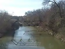 The current highway begins as a freeway at I-30 (also unsigned US 67) in Dallas, almost in Mesquite. The freeway continues east into Mesquite where it meets I-635 at a stack interchange. East of I-635, the US 80 freeway serves as the northern terminus of SH 352, the main highway into downtown Mesquite. Bisecting Samuell Park, US 80 enters Sunnyvale, then crosses into Kaufman County.[6][7] The freeway makes a curve to the southeast, skirting the town of Forney. US 80 is the main highway and only freeway serving the town. Though there is no business loop through Forney proper, FM 688, which runs the entire length of Broad Street through town, serves a similar function.[8][9] On the outskirts of Terrell, US 80 leaves the freeway and becomes a four lane divided highway known as Moore Avenue, intersecting SH 205 on the western edge of town, then SH 34 Bus. and SH 34 in the center of Terrell.[7][10] The remainder of the freeway between Terrell and I-20 makes up the full route of Spur 557.[11] The entire US 80/Spur 557 freeway was a section of I-20 until 1987, when the Interstate was moved onto a new freeway through Lawson and Heartland.[8][11][5] A pair of frontage roads services the entire US 80 segment of the freeway, except for a small area west of Forney, where US 80 crosses a bridge over the East Fork Trinity River.[6][7]