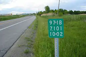Last northern reference marker on NY 971B (former US 9); Canadian customs are seen to the left