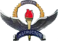 Instructors who have completed the requirements for their applicable master instructor program may be awarded the Air Education and Training Master Instructor Badge. Physically, the only difference between these two badges is the incorporation of the word "MASTER" arched in silver below the torch within the blue field of the badge's shield.[14]