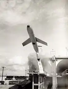 In June or July 1959, a MIM-14 Nike-Hercules anti-aircraft missile was accidentally fired from the Nike site 8 battery at Naha Air Base on Okinawa which according to some witnesses, was complete with a nuclear warhead.[33] While the missile was undergoing continuity testing of the firing circuit, known as a squib test, stray voltage caused a short circuit in a faulty cable that was lying in a puddle and allowed the missile's rocket engines to ignite with the launcher still in a horizontal position.[33] The Nike missile left the launcher and smashed through a fence and down into a beach area skipping the warhead out across the water "like a stone."[33] The rocket's exhaust blast killed two Army technicians and injured one.[33] Similar accidental launches of the Nike-H missile had occurred at Fort George G. Meade[34] and in South Korea. Newsweek magazine reported that following a highly publicized U.S. nuclear weapons accident in 1961, Kennedy was informed that, "there two cases in which nuclear armed anti-aircraft missiles were actually launched by inadvertence."[35][36][37]