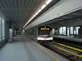 Line U2 is a line on the Vienna U-Bahn metro system. Opened in 1980, it currently has 20 stations and a total length of 16.7 km (10.4 mi), from Karlsplatz to Seestadt.[1] It is connected to U1 at Karlsplatz and Praterstern, U3 at Volkstheater, U4 at Karlsplatz and Schottenring.