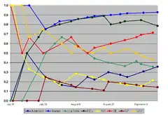 | 6 | 5 | 9 | .357[lower-alpha 1] | 8 | ||