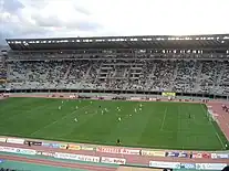 Las Palmas' third appearance in European competition came with the 1977–78 UEFA Cup, where they defeated FK Sloboda Tuzla of Yugoslavia in the first round before falling to the English side Ipswich Town.[3] Under the management of Miguel Muñoz, and with players such as Argentines Miguel Ángel Brindisi, Daniel Carnevali (the first to arrive in 1973), Carlos Morete and Quique Wolff, the club also reached their first final of the Copa del Rey in that year, losing on 19 April to Barcelona at the Santiago Bernabéu Stadium (1–3).[4]