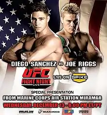 UFC Fight Night: Sanchez vs. Riggs[1] (also known as UFC Fight Night 7) was a mixed martial arts event held by the Ultimate Fighting Championship on December 13, 2006 at the MCAS Miramar near San Diego, California. It was the first UFC event to take place on a military base. The audience consisted almost entirely of United States Marines stationed at Miramar; only five pairs of seats were available to the public via auction. All auction proceeds went to the Marine Corps Community Services Quality of Life Programs for the Marines and Families.