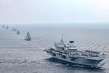 ![]() HMS Queen Elizabeth and her carrier strike group during Exercise Westlant 19 (Nov 2019) | |