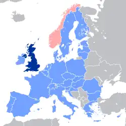 The UK and European Union have a long history of reciprocal healthcare agreements. The UK's National Health Service was one of the first universal healthcare systems established anywhere in the world, influencing British dominions such as Australia who then formed reciprocal agreements for their citizens to receive treatment.[11] The European Economic Community (EEC) also agreed in 1971 that members should provide social security services including healthcare to each other's residents, and the UK joined the EEC in 1973.[12]