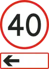 This example is displaying a maximum permissible speed of 40 mph (64 km/h) only for the diverging route to the left. Unless otherwise indicated with another sign, this does not apply to the current route.
