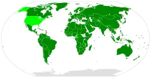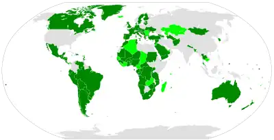 The United States has been conspicuously absent from the States Parties that have ratified or acceded to the convention. During Barack Obama's administration the U.S. became a signatory to the convention on 24 July 2009.[20] On July 31, 2012, the U.S. Senate Foreign Relations Committee recommended U.S. ratification, "subject to three reservations, eight understandings and two declarations."[21] In December 2012, a vote in the United States Senate fell six votes short of the two-thirds majority required for advice and consent on ratification.[22] In July 2014, the Senate Foreign Relations Committee again approved a resolution for advice and consent,[23] but the measure was not brought to a vote of the full Senate.