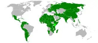 In 1971, the Soviet Union and Guinea together submitted early drafts of a convention to deal with the suppression and punishment of apartheid.[6] In 1973, the General Assembly of the United Nations agreed on the text of the International Convention on the Suppression and Punishment of the Crime of Apartheid (ICSPCA).[1] The convention has 31 signatories and 107 parties. The convention came into force in 1976 after 20 countries had ratified it. They were: Benin, Bulgaria, Chad, Czechoslovakia, Ecuador, the German Democratic Republic (East Germany), Guinea, Hungary, Iraq, Mongolia, Poland, Qatar, Somalia, Syria, the USSR, the United Arab Emirates, Tanzania, and Yugoslavia.[7]