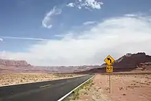 The Utah segment of US 89A was first commissioned as part of Utah State Route 11. This highway ran from Nephi to the Arizona state line near Kanab. This route is still drivable as the modern US 89A, US 89, and Utah SR-132. With the establishment of the United States highway system in 1926, most of SR-11 was used for the routing of US 89 through southern Utah; the internal designation used by state agencies remained SR-11.[5] In 1969, as part of a series of changes to state routes, the portion north of Sevier Junction (I-70 and US 89 near Joseph) was transferred to other routes, removing the only part of State Route 11 that was signed with the state designation. It is also during this time that a new alignment for US 89 was constructed to serve the Glen Canyon Dam, with SR-11 being now signed as US 89A south of Kanab and US 89 to the north. As part of the 1977 Utah state route renumbering to conform signage and legislative definitions, SR-11 was truncated to what is now signed US 89A.[5] The route was signed SR-11, with "TO US 89A" at the northern terminus in Kanab and a "TO US 89" at the Arizona state line. In 2008, however, SR-11 was deleted after a bill in the Utah legislature was passed to restore U.S. Route 89A in Utah.[6]