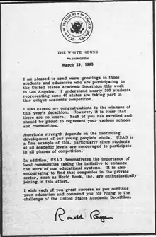 - "Academic Decathlon Championship Teams Honored by President". PR Newswire. April 21, 1992.