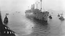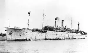 USS America (ID-3006) was a troop transport for the United States Navy during World War I. She was launched in 1905 as SS Amerika by Harland and Wolff in Belfast for the Hamburg America Line of Germany. As a passenger liner, she sailed primarily between Hamburg and New York. On 14 April 1912, Amerika transmitted a wireless message about icebergs near the same area where RMS Titanic struck one and sank less than three hours later. At the outset of the war, Amerika was docked at Boston; rather than risk seizure by the British Royal Navy, she remained in port for the next three years.
