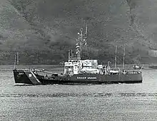 On January 5, 1969 Ironwood arrived in Homer, Alaska. She was the first Coast Guard ship home-ported there.[25] An Atlantic Richfield Company tanker, SS Yukon, hit a rock in Cook Inlet in March 1969 and began to spill oil. Ironwood was dispatched to the scene to escort the vessel to safety.[26] In April 1969 a Shell Oil drilling platform in Cook Inlet exploded and caught fire. Ironwood responded, assisting in fire fighting.[27] While stationed at Homer she was active in enforcing fisheries laws in the Bering Sea.[28]