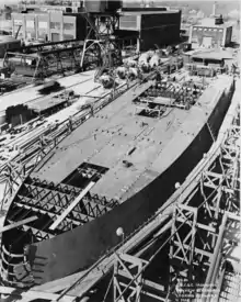 Her keel was laid down on November 2, 1942, she was launched on March 16, 1943,[3] and she was commissioned on August 4, 1943.[4]